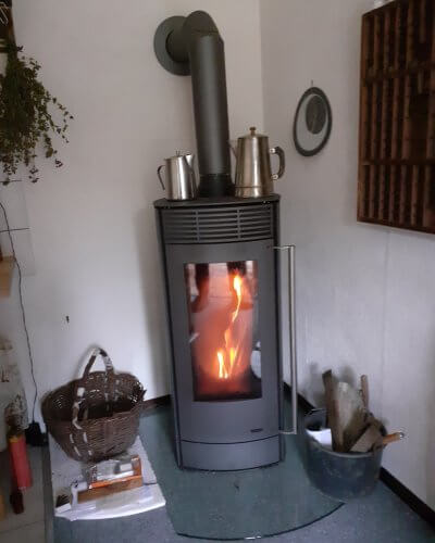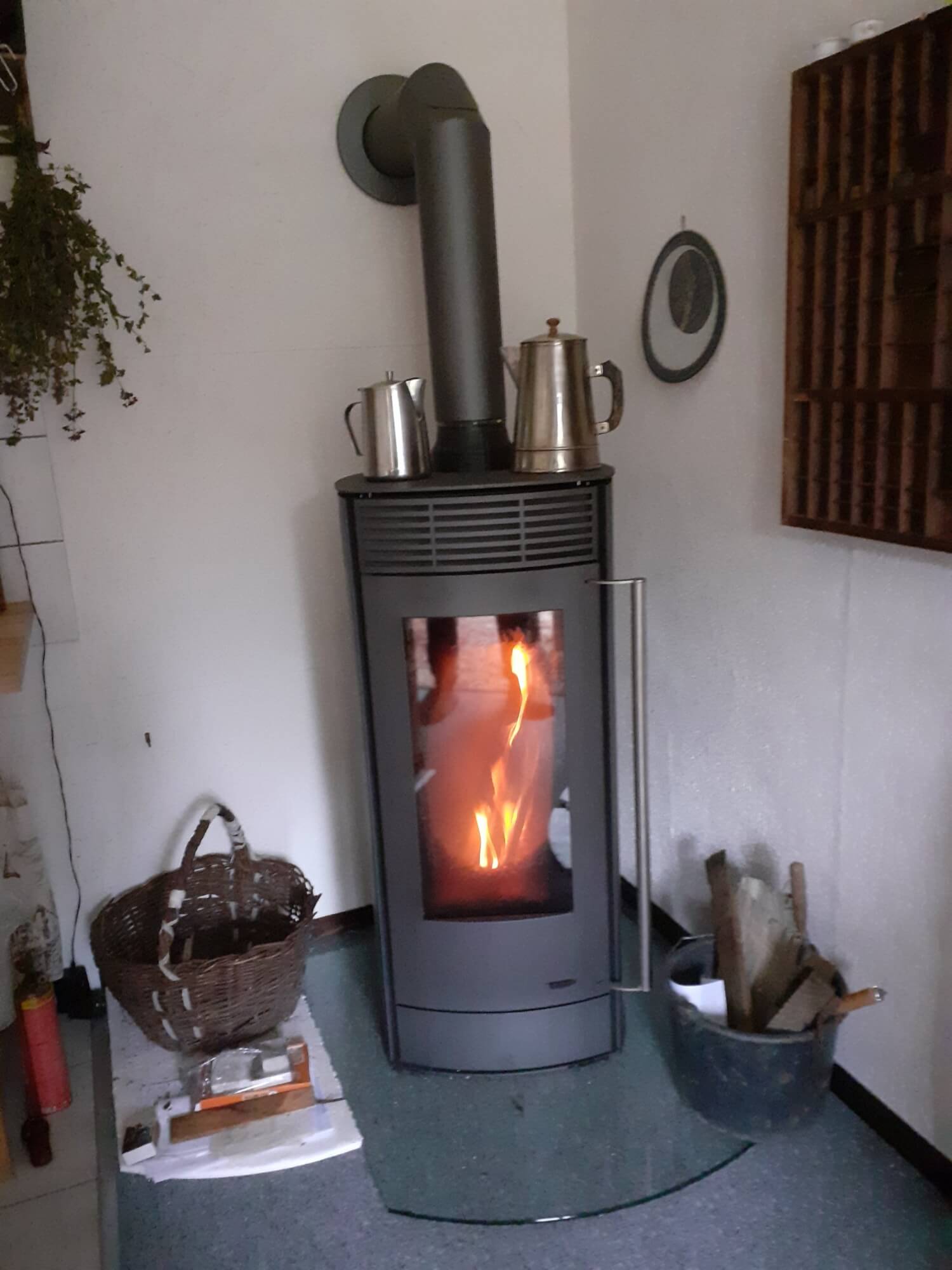 Seit Sommer 2020 wohne ich hier im Chalet und die Ferme steht Gästen und Besuchern zur Verfügung. Das Haus hat Wasser- und Stromanschluss. Beheizt wird es mit einem Kaminofen für Holz, der für meine Teilüberwinterung 2021/22 beschafft wurde und das Haus ausreichend heizt. Für dessen Betrieb war noch ein Abgassystem notwendig, welches aus gedämmten Inox-Rohren besteht.