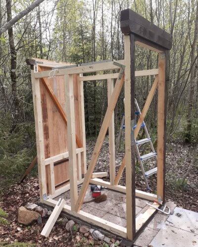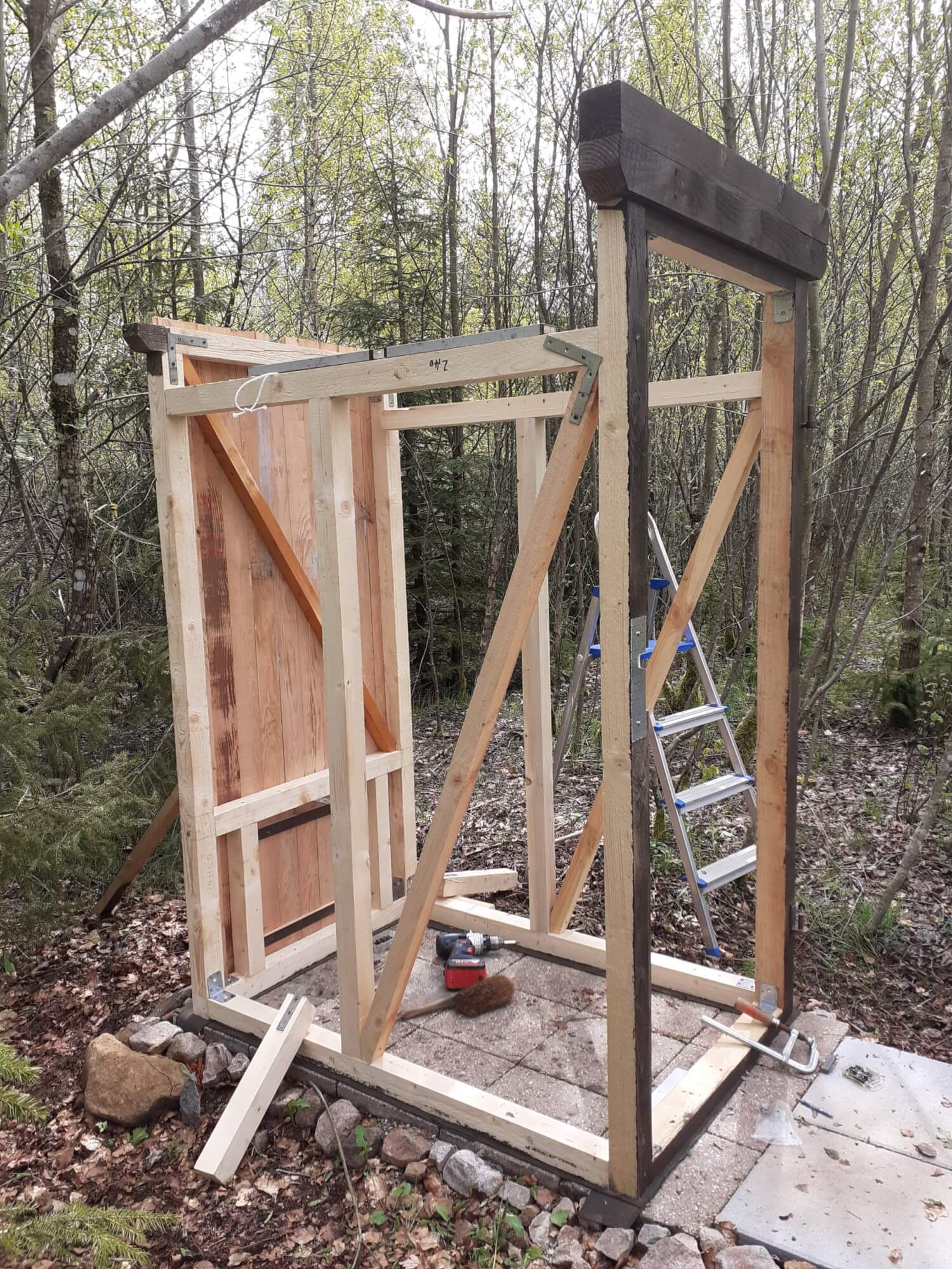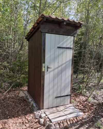 Im unmittelbaren Umfeld des Chalets entstand noch ein Trockenklosett mit der Trennmöglichkeit von festen und flüssigen Stoffen, weil ich die Entscheidung, später noch einen kleinen Anbau für eine Dusche mit WC zu bewerkstelligen, vorerst zurück gestellt habe.
