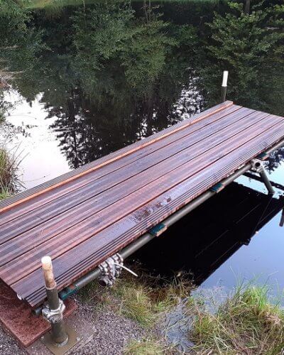Als Reaktion auf Gästewünsche baute ich im Sommer 2021 noch einen Badesteg aus älteren Gerüstteilen, die beim Neffen eigentlich entsorgt werden sollten.
