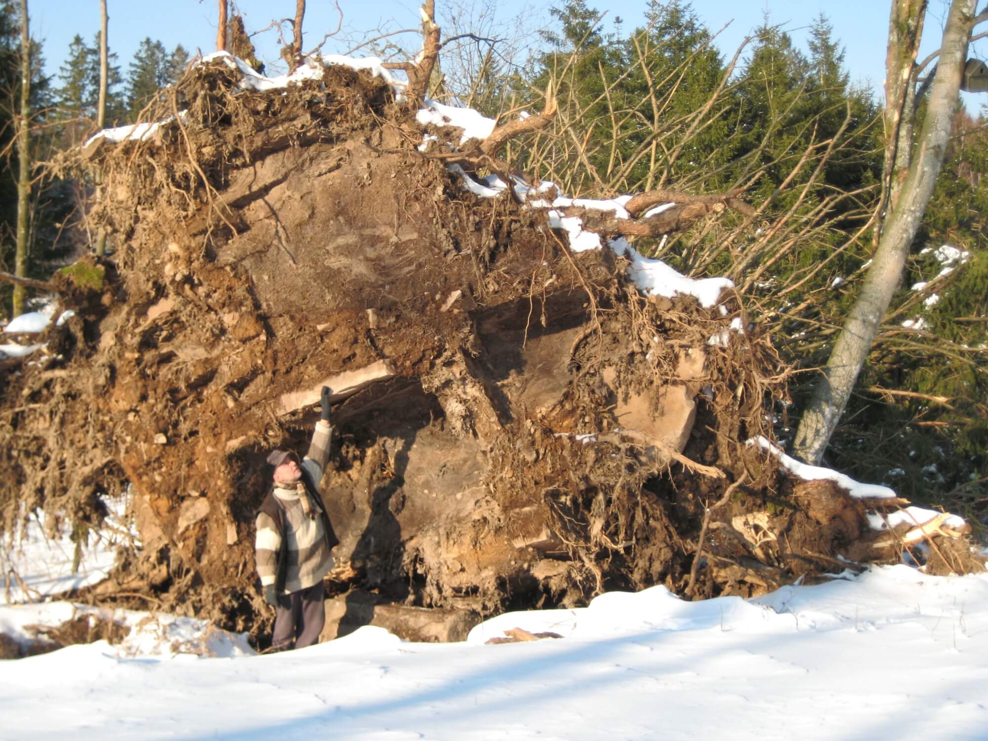 So geschehen auch im Februar 2010, als ein schwerer Sturm eine fast 100 jährige Fichte mitsamt dem Wurzelballen aus dem Boden riss.