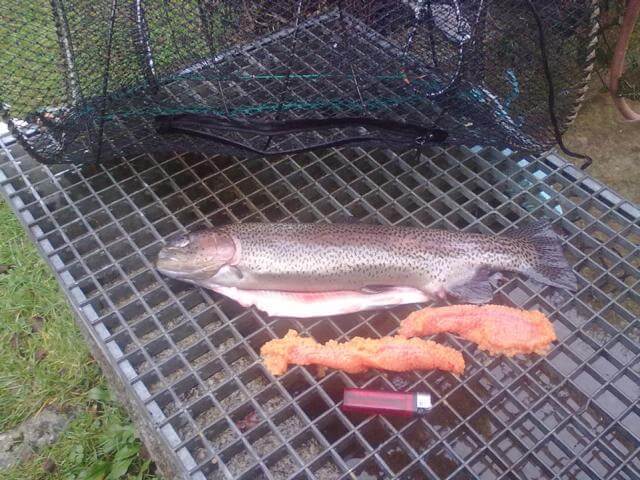 Nach erfolgreicher Forellenjagd mit der Reuse, war das Abendessen für heute gesichert.