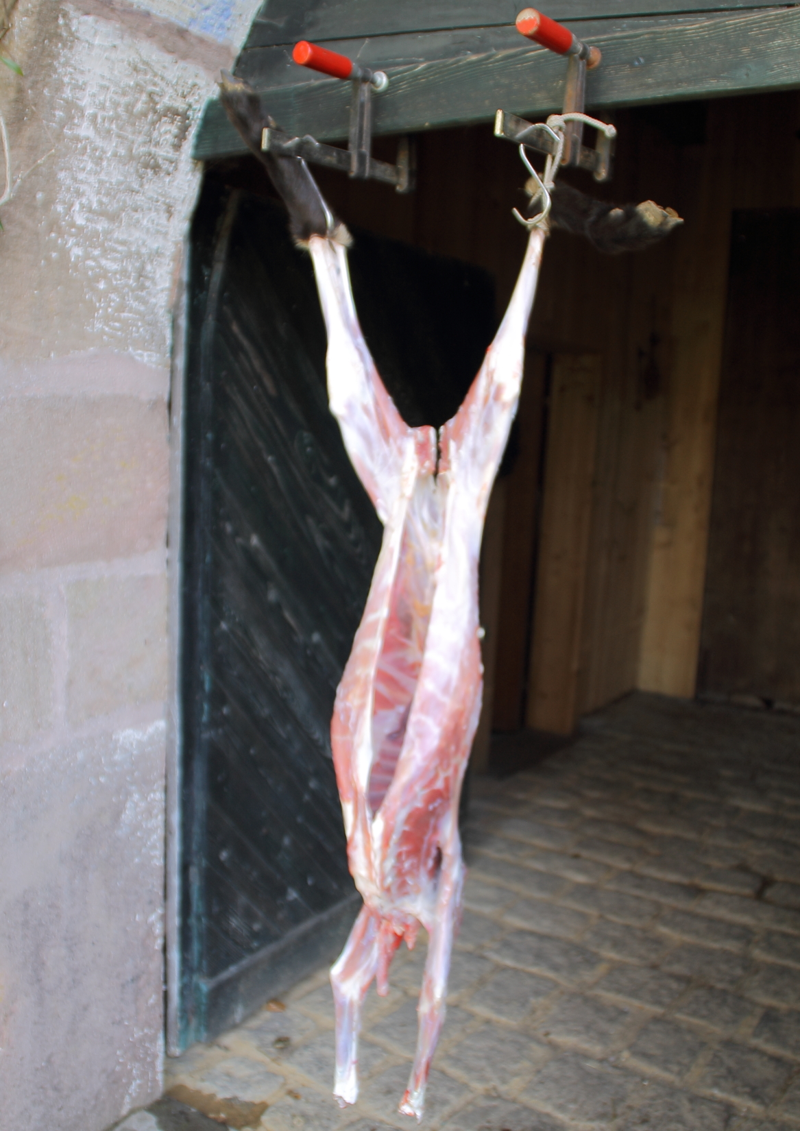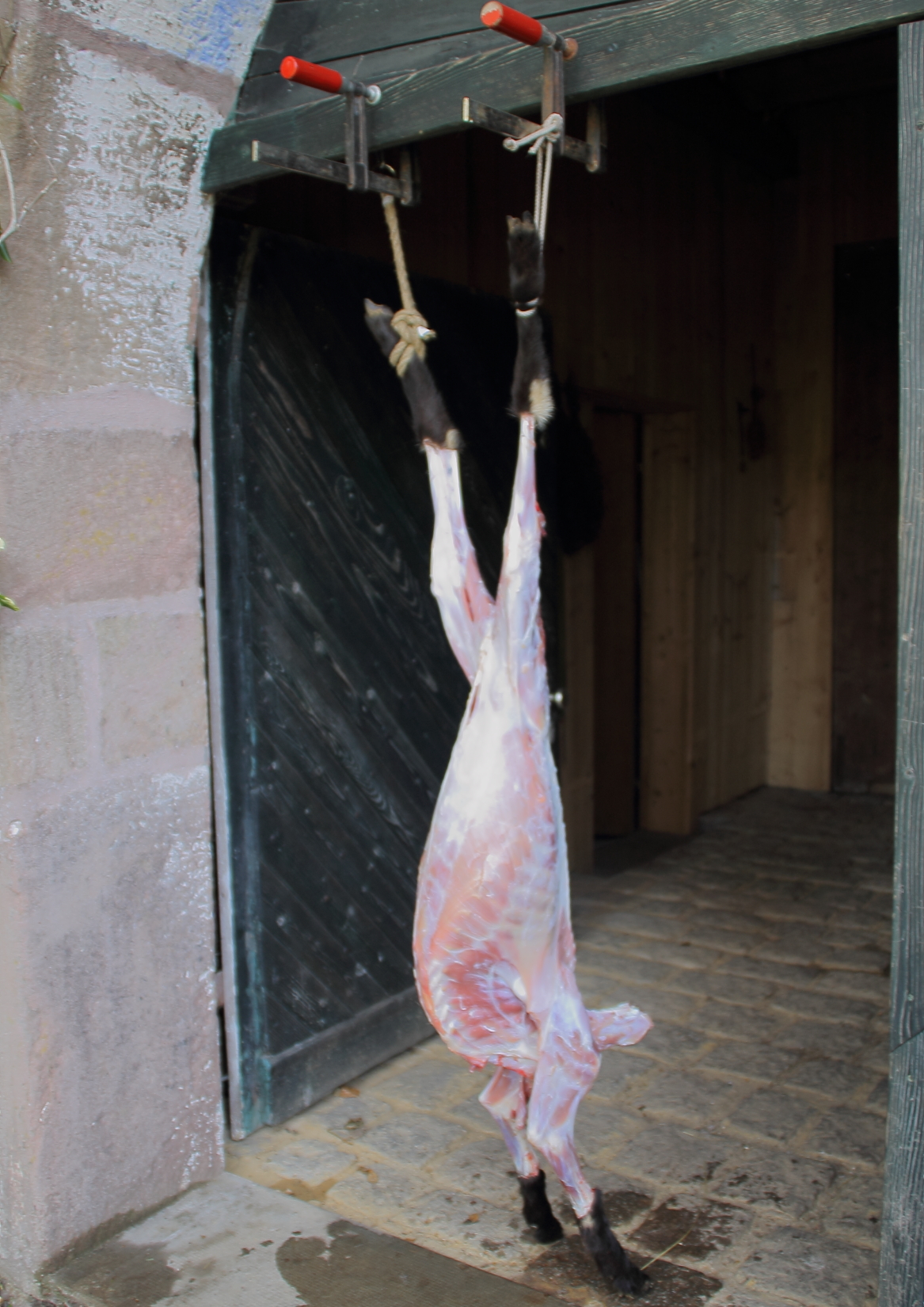 Bis, ja bis zu jenem Mittwoch nach Ostern, als das Lamm morgens röchelnd und nur noch liegend im Stall kurz vor dem Ableben nach Hilfe suchte. Diese Hilfe kam dann auch schnell und schmerzlos durch den Schuss des Bolzenapparates. Tierarzt? Dafür war es schon zu spät. Auch wenn es keine äusserlichen Anzeichen für die Probleme des Lammes gab, musste schnell entschieden werden.